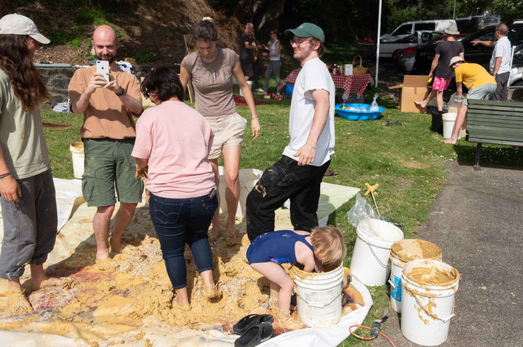 pre:fab held an end of year Mixer to celebrate the milestones achieved over the previous twelve months and to thank all of our members and supporters for their efforts in contributing to and building the pre:fab community. Attendees were asked to dress in old clothes and come prepared to participate in an interactive demonstration of mud mixing, earth brick making, and hot dog assembly.